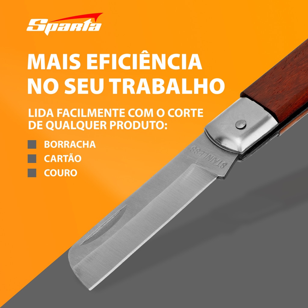 O Canivete Sparta 7899855, com sua lâmina reta e cabo de madeira, destaca-se como uma ferramenta versátil e robusta, projetada para atender a uma ampla gama de necessidades de corte. A eficácia no corte de materiais como borracha, couro e papelão faz dele uma escolha ideal tanto para profissionais quanto para artesãos amadores, além de ser um item indispensável para turistas e amantes da natureza que valorizam a funcionalidade e a confiabilidade em suas ferramentas. Vantagens Detalhadas: Lâmina de Aço Inoxidável 3Cr13: A escolha do aço inoxidável 3Cr13 para a lâmina do canivete não é por acaso. Este tipo de aço é conhecido por sua excelente resistência ao desgaste e durabilidade, garantindo que a lâmina permaneça afiada por mais tempo, mesmo sob uso frequente. A resistência à corrosão é uma característica fundamental para uma ferramenta que pode ser exposta a diferentes ambientes e condições climáticas, assegurando uma longevidade superior. Cabo de Madeira Ergonômico: O cabo, feito de madeira de alta qualidade, não só proporciona uma estética atraente mas também oferece uma pegada firme e confortável. A textura da madeira garante que o canivete não escorregue durante o uso, aumentando a segurança e o controle durante o corte. A sensação agradável ao toque faz com que o uso prolongado do canivete seja menos cansativo e mais prazeroso. Peso e Portabilidade: Pesando apenas 133 g, o Canivete Sparta 7899855 é leve o suficiente para ser transportado com facilidade, sem comprometer sua robustez ou funcionalidade. Essa combinação de leveza e eficácia faz dele uma ferramenta conveniente para levar em caminhadas, acampamentos ou simplesmente para ter sempre à mão em uma caixa de ferramentas ou no bolso. O Canivete Sparta 7899855 émais do que apenas uma ferramenta de corte; é um companheiro confiável para uma variedade de situações e tarefas. Seja para uso profissional em oficinas, para artesanato detalhado, ou como parte essencial do equipamento de um amante da natureza, este canivete combina qualidade, segurança e conforto de maneira exemplar. A durabilidade da lâmina, juntamente com o design ergonômico do cabo, assegura que este canivete não só atenda às expectativas de desempenho mas também ofereça uma experiência de uso agradável e segura.
