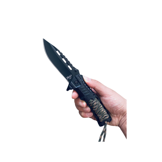 Canivete A093 Preto Corda de Camuflagem Abertura Manual Aventura Escalada Sobrevivência