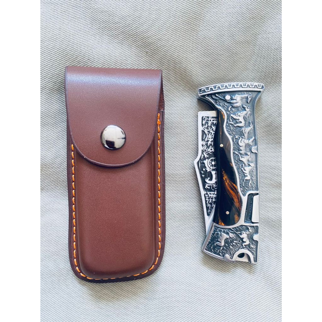 Canivete Aço Inox Super Luxo Coleção + Bainha Couro KB3189B