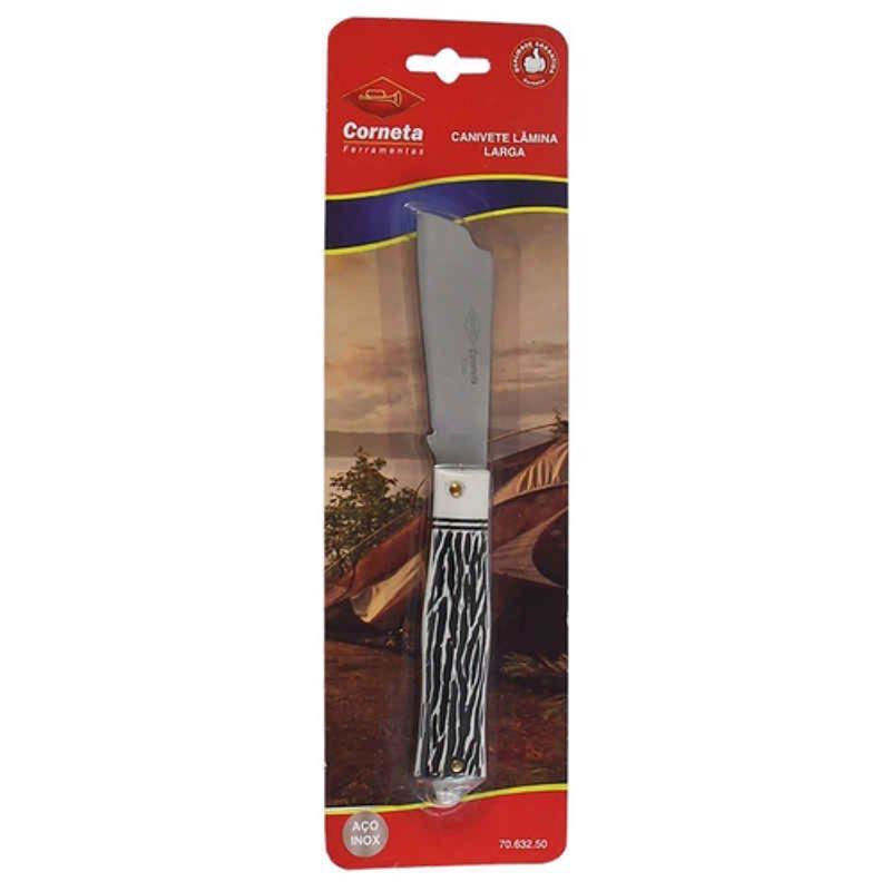 Canivete Dobrável Basic Inox Lamina Larga Uso Geral Cabo Plástico Rústico Profissional - CORNETA
