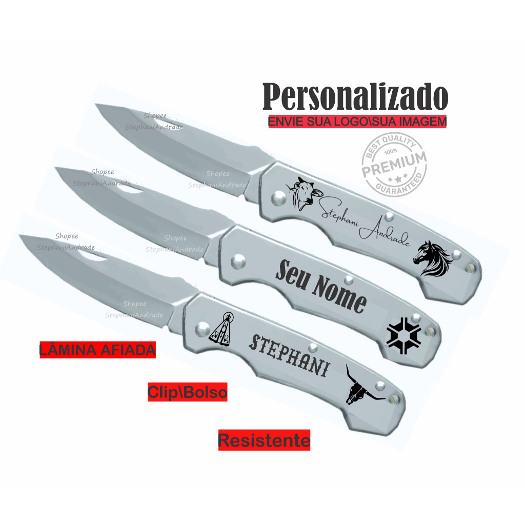 Canivete Inox de Clip\Bolso Personalizado Seu Nome