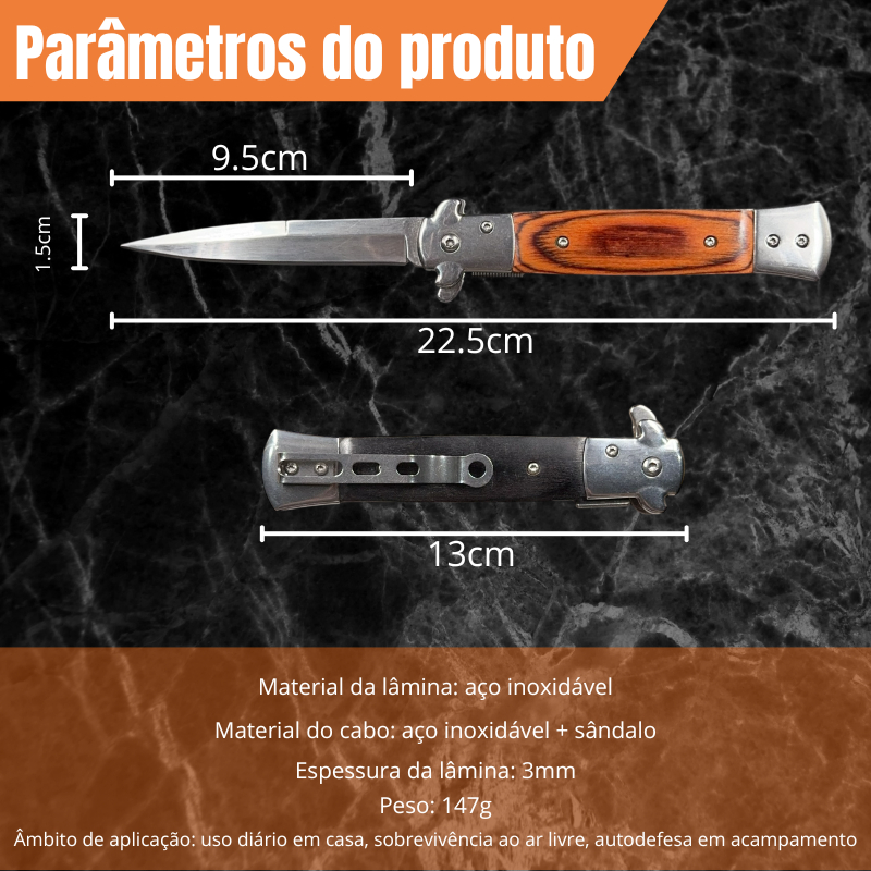 Canivete Milano Máfia Stiletto em Madeira com Lâmina em Aço - Design Elegante e Afiado
