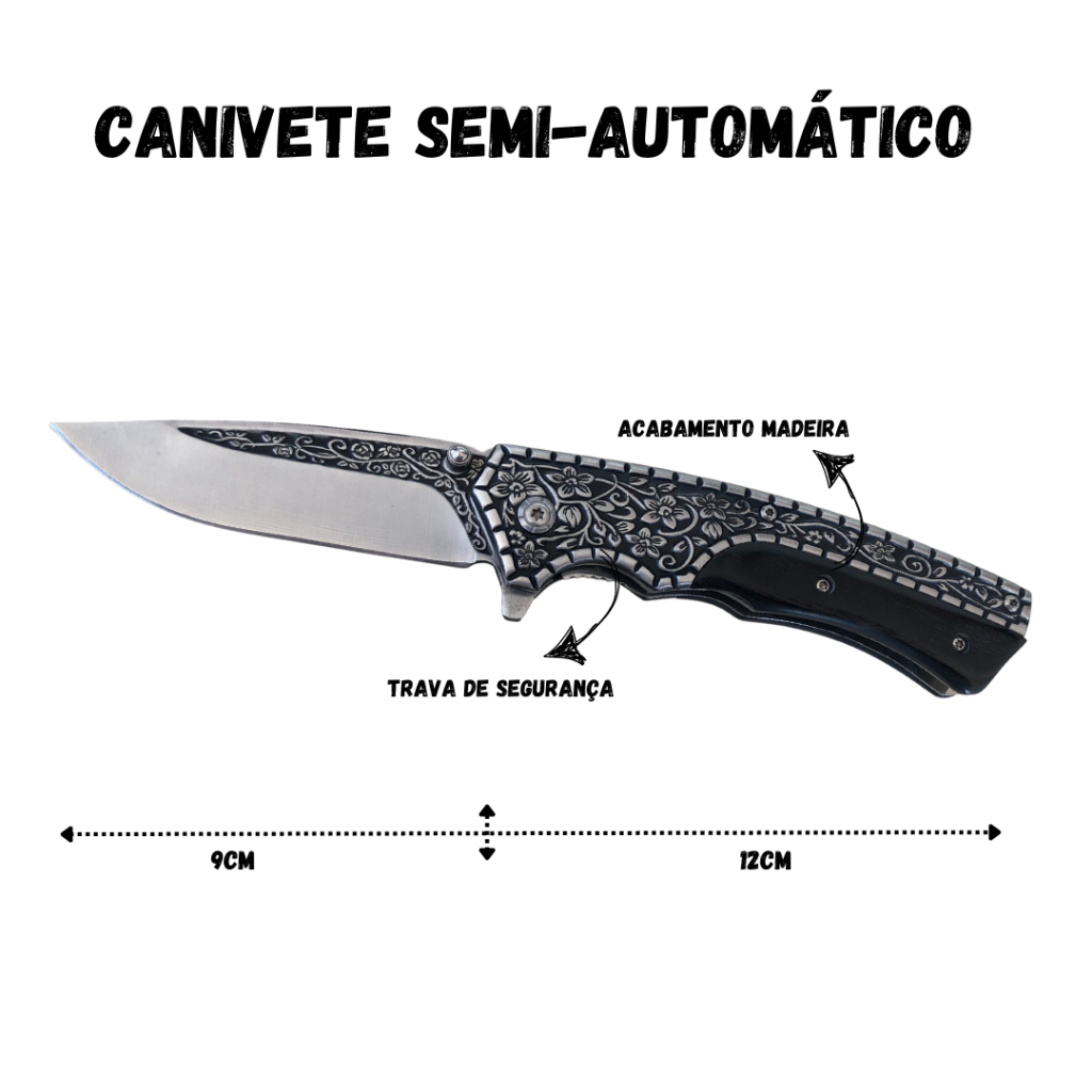 | Canivete Semi Automático Cabo Madeira e Ferro (Trabalhado) - 1678 este produto | R$ 44,99 | — | 5.0/5 | 4 |