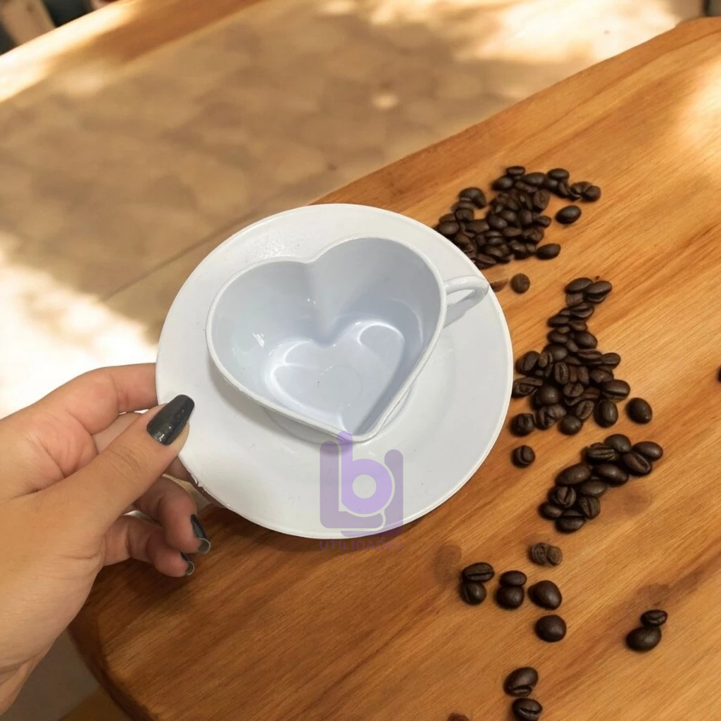 Cantinho do Café - 6 Xícaras Coração em Acrilico + 6 Pires Redondo chá mesa posta
