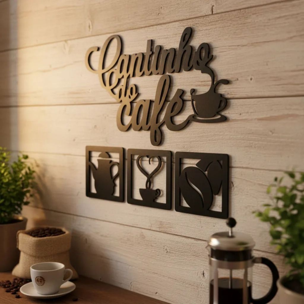 Cantinho do café Kit com 4 peças placas decorativas MDF 3mm Corte a laser