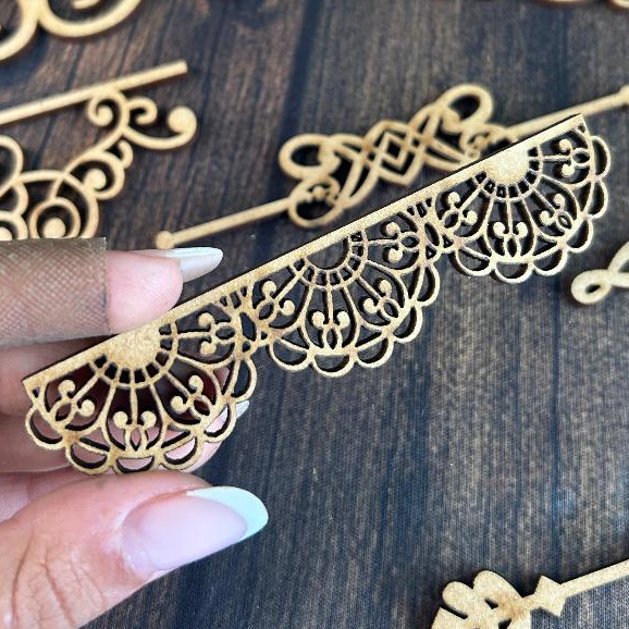 MDF El Shaddai Trabalhamos com diversas peças para seu artesanato! Cantoneiras em MDF cortadas a laser, bem preciso e bem acabado para sua peça Medida modelos de 01 a 09 - 10cm comprimento Valor referente ao kit com 10 unidades. Qualquer dúvida estamos a disposição.