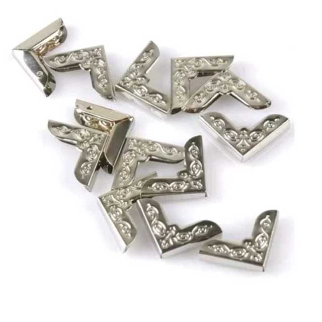 Cantoneira para diário livro bíblia prata Produzido em ferro, a cantoneira é ideal para confecção, customização e protetor de bandejas, caixas de MDF, caixas de madeira, livros, cadernos, agendas, carteiras, couro, bíblias, lembrancinhas, decorações e artesanatos em geral. Com a melhor qualidade do mercado, a cantoneira descasca e não desbota, garantindo assim, maior satisfação dos nossos clientes!!! Ficha técnica: Material: Ferro Cor: prata Tipo: Entremeio Formato: Cantoneira Tamanho: 16X29MM Produto: Importado