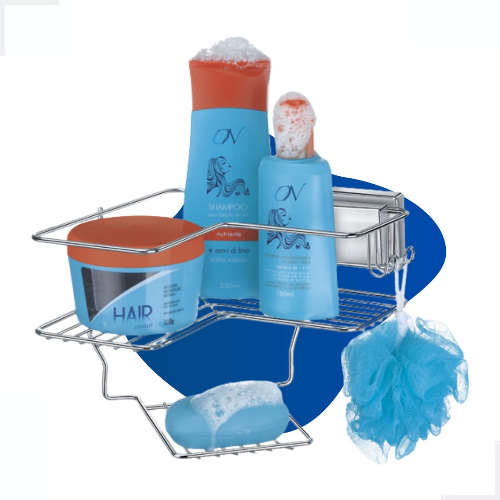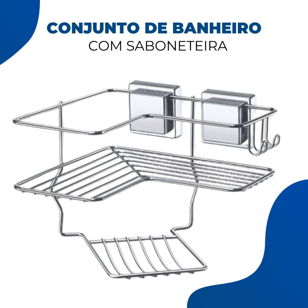 Cantoneira Porta Shampoo Condicionador Sabonete Azulejo Fixação S/ Furo Ventosa Metal Cromado Arthi