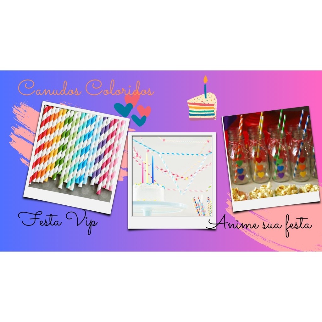 Canudo Colorido Biodegradável Topo Bolo Festa Drink 25und
