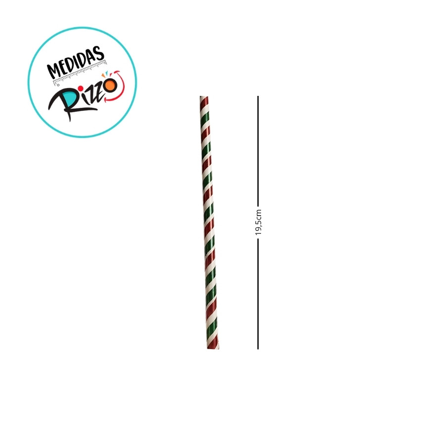 Canudo Papel Branco com Listras - Vermelha e Verde - 19,5cm - 12 unidades - Artlille - Rizzo
