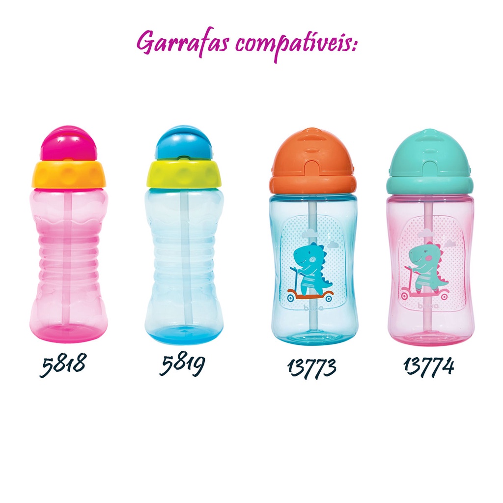 Canudo Refil com Escova de Limpeza Garrafinha Fresh e Dino Buba
