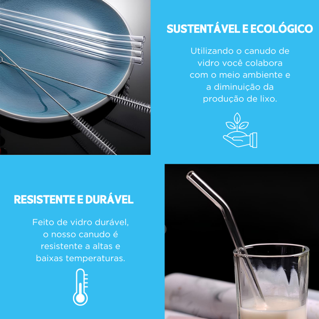 Canudos de Vidro Reutilizáveis Com Escova Para Limpeza - Kit Ecológico - AERO