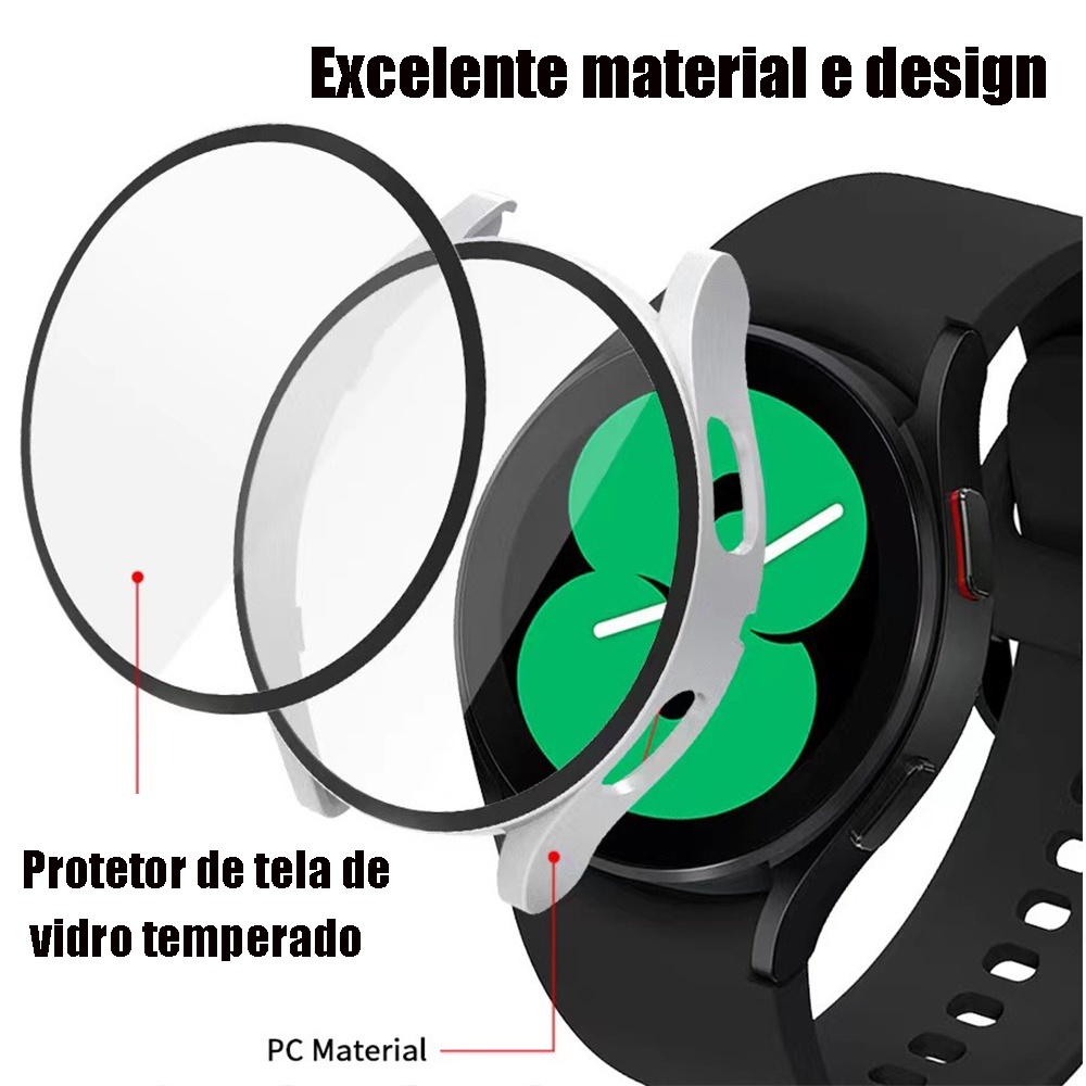 Capa Acrílico com Película Para Smartwatch Samsung Watch 4 Tamanho 40 mm/44mm Case e Capinha de Relógio Inteligente