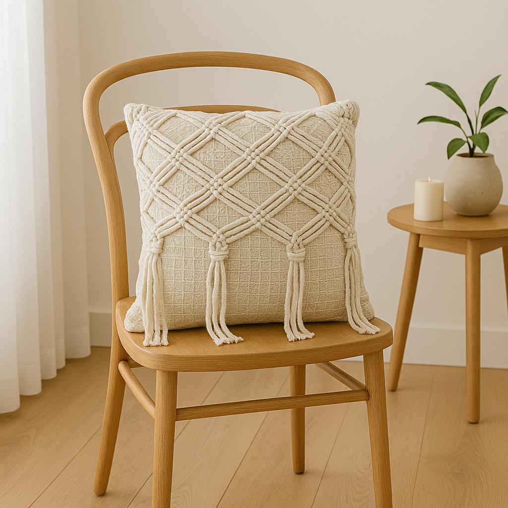 Capa Almofada Macramê Trançada Artesanal Boho Decoração Sofá 100% Algodão 45x45