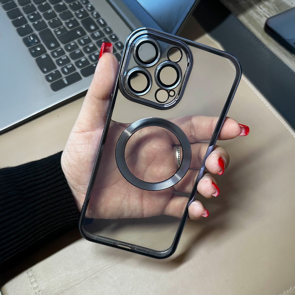 Magsafe Luxo Proteja seus dispositivos com estilo incomparável! Na Az, nossa paixão é oferecer produtos que combinam proteção e elegância. Descubra uma vasta gama de capas e acessórios cuidadosamente projetados para se adaptarem perfeitamente ao seu celular e tablet, garantindo que você esteja sempre seguro e com estilo. • Produzida em TPU de alta qualidade e material Premium! • Possui elevação que protege totalmente as câmeras traseiras. As aberturas das lentes das câmeras são fechadas em policarbonato totalmente transparente. As aberturas dos sensores traseiros são vazadas. • Bordas de TPU brilhoso, que se encaixam perfeitamente ao aparelho e não atrapalham o uso dos botões nem as portas de entrada do celular. As laterais são um pouco mais altas que o nível da tela, ajudando a proteger a tela do aparelho. • Oferece ótima proteção. • Compatível com carregadores sem fio.