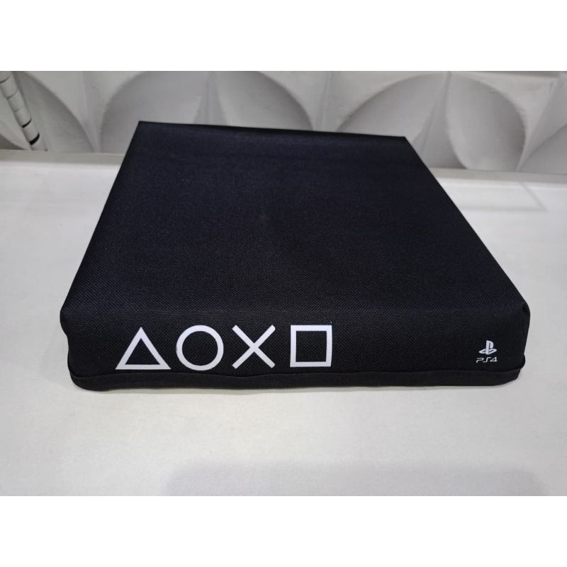 Capa anti poeira PS4 SLIM Preta logo botões HORIZONTAL