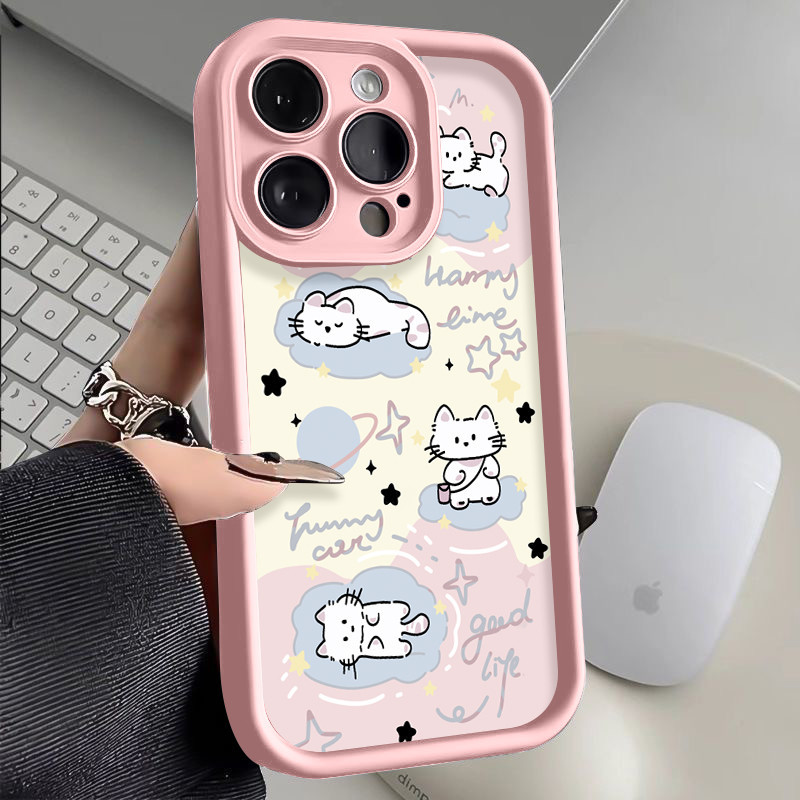 Capa Anti-Queda De Silicone De Gato Branco Fofo Adequado Para iPhone 11 12 13 14 15 16 17 Pro Max À Prova D'água De Choq