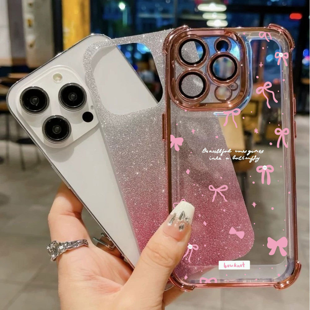 Capa Anti-Queda Para iPhone 13 16 15 14 Plus 12 11 17 Pro Max Capinha Bonito Arco Rosa Transparente Capas para Celular