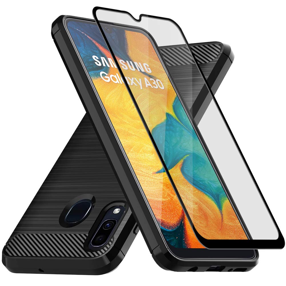 Capa anti shock para Samsung galaxy a30/a20 fibra couro(película de vidro opcional)