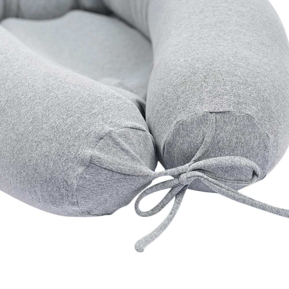 ATENÇÃO: Não acompanha enchimento. A Capa Ninho Cinza Mescla é um acessório para vestir a tradicional Almofada de Corpo Rolo Nó (vendida separadamente) que se transforma num aconchegante ninho. O ninho protege envolvendo os pequeninos e, quando utilizado aberto sem unir as pontas do rolo com o lacinho, abriga também os bebês já maiores. É ideal para aquele passeio gostoso ou uma sonequinha básica. Prática de usar, fácil de lavar e de cor neutra, ela combina com meninas e meninos, além de ser um charme. 90% Poliamida 10% Elastano