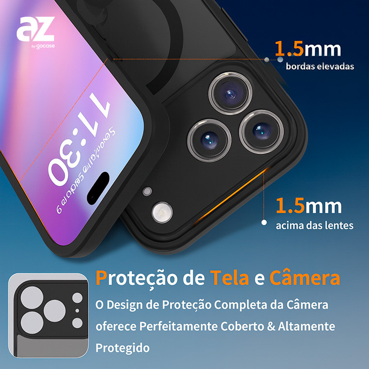 Capa Anti Impacto Gocase Touch Mag Plus Desenvolvida para iPhone 17 Pro Max Capa de excelente qualidade e custo-benefício, desenvolvida com material de primeira linha. Produzida em policarbonato, oferece uma textura sofisticada e resistente. O design conta com bordas em TPU, garantindo proteção contra impactos e maior durabilidade. Compatível com carregadores MagSafe, proporciona praticidade no dia a dia sem abrir mão da segurança para seu dispositivo. Destaques: • Proteção da Câmera Aprimorada: Borda elevada de 1,5 mm que evita arranhões e danos nas lentes. • Proteção da Tela: Bordas frontais de 1 mm para segurança extra contra quedas e impactos. • Durabilidade Garantida: Material que não marca com impressões digitais e mantém o visual sempre limpo. • Compatível com Acessórios MagSafe: Funciona perfeitamente com carregadores, power banks, e suportes de carro magnéticos. • Design Confortável: Toque suave, firme nas mãos e sem volume excessivo. A escolha ideal para quem quer unir proteção, estilo e praticidade! As cases da AZ estão entre as melhores do mundo. Conecte-se com estilo! Não utilize produtos químicos abrasivos para higienizar a capa, inclusive álcool!
