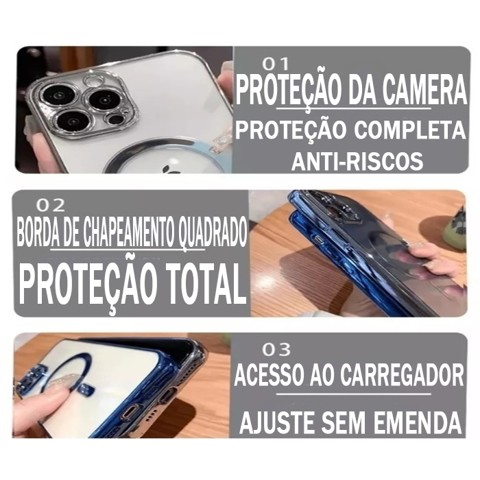 Capa Capinha Anti Impacto Magsafe Protetora De Lente De Vidro iPhone 16 15 14 13 12 11 Pro Max Proteção De Câmera Luxo