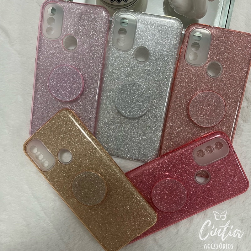 Capa Capinha Brilho Motorola Moto E20 acompanha Pop Socket