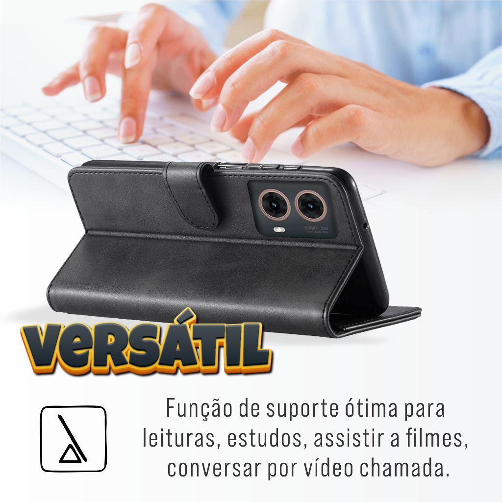 Capa Capinha Carteira Flip + Película Para Motorola G35