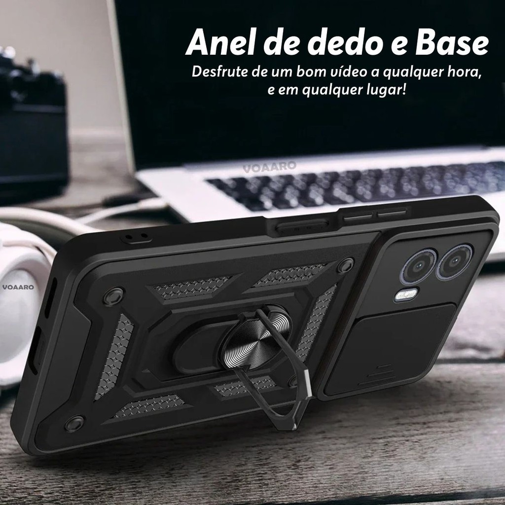 - Alta Proteção - Ótimo acabamento com alto relevo na parte que protege a câmera; - Dupla Resistência - Proteção anti impacto de dupla camada; - Multi-funções - Anel de dedo e metal imbutido para aderir em imã; - Base - Anel ajustável para função de base; - Encaixe - 100% Perfeito; - Slide cover para maior proteção das câmeras e maior privacidade - Todas as funções e botões funcionam normalmente com essa capa - Cor: Preto - Compatível com Motorola Moto Edge 50 Fusion - NÃO SERVE EM OUTRAS VERSÕES