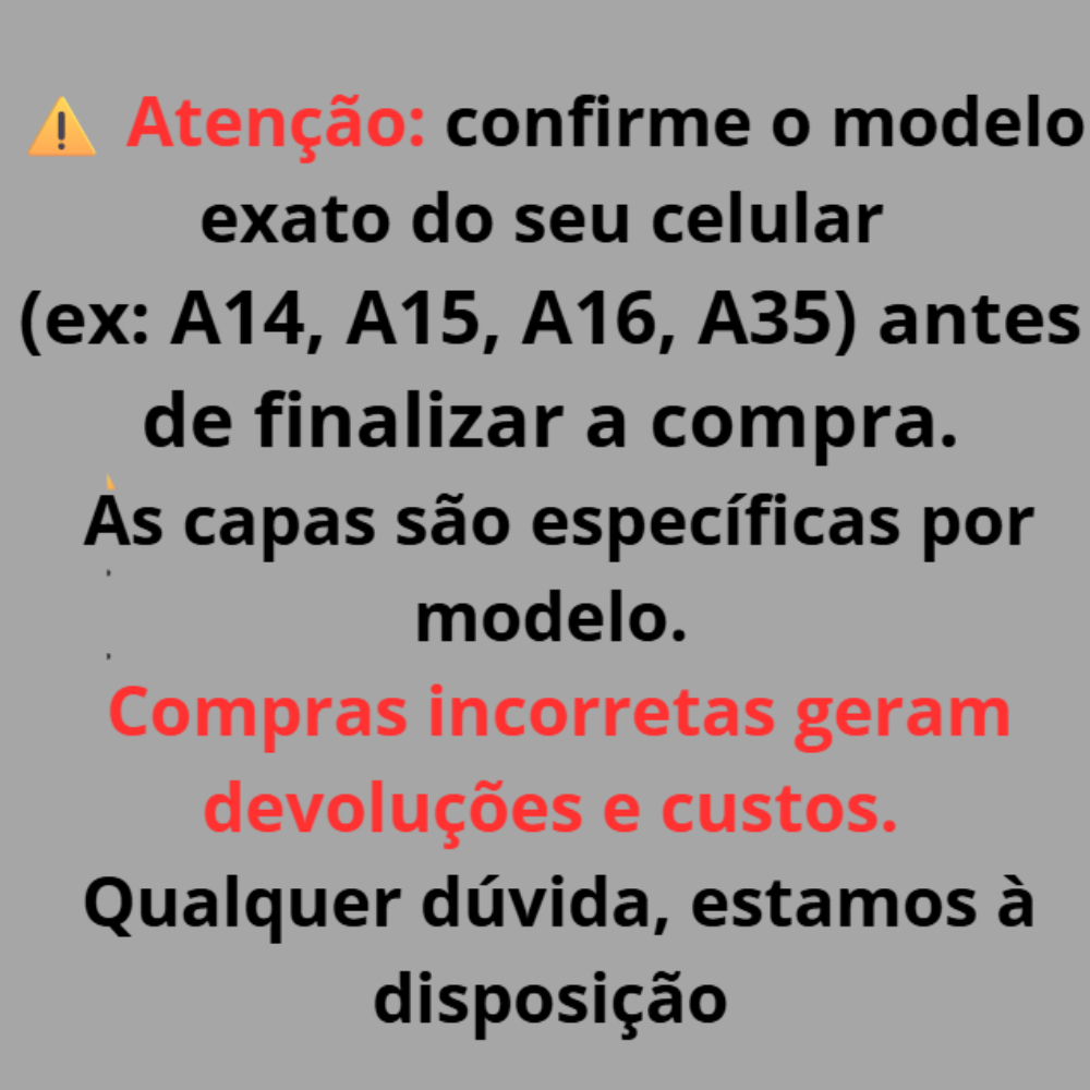 Capinha Compatível Com Samsung A14 Anti Impacto aveludada silicone Vantagens Exclusivas: ✅ Proteção Anti Impacto: Amortece quedas e choques. ✅ Interior Aveludado: Protege a traseira do celular contra riscos. ✅ Toque Suave Premium: Sensação aveludada e antiderrapante. ✅ Compatibilidade Total: Serve perfeitamente nos modelos A14 4G ✅ Ajuste Perfeito (Case): Acesso fácil a todas as portas e botões. Uma Capa Protetora de Luxo que garante segurança sem comprometer o design. Compre agora! ⚠️ NOTA SOBRE CORES: A cor do produto pode ter uma leve variação na tonalidade devido à iluminação das fotos ou à configuração de brilho e contraste da sua tela (monitor/celular).