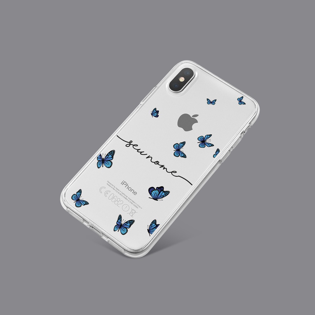 Capa Capinha de Celular de Borboletas Azuis com Nome