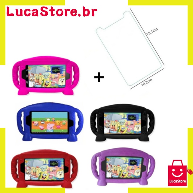 Capa Capinha Infantil Tablet Multilaser M7Plus/M7 3G 4G + Película do vidro 9H temperado