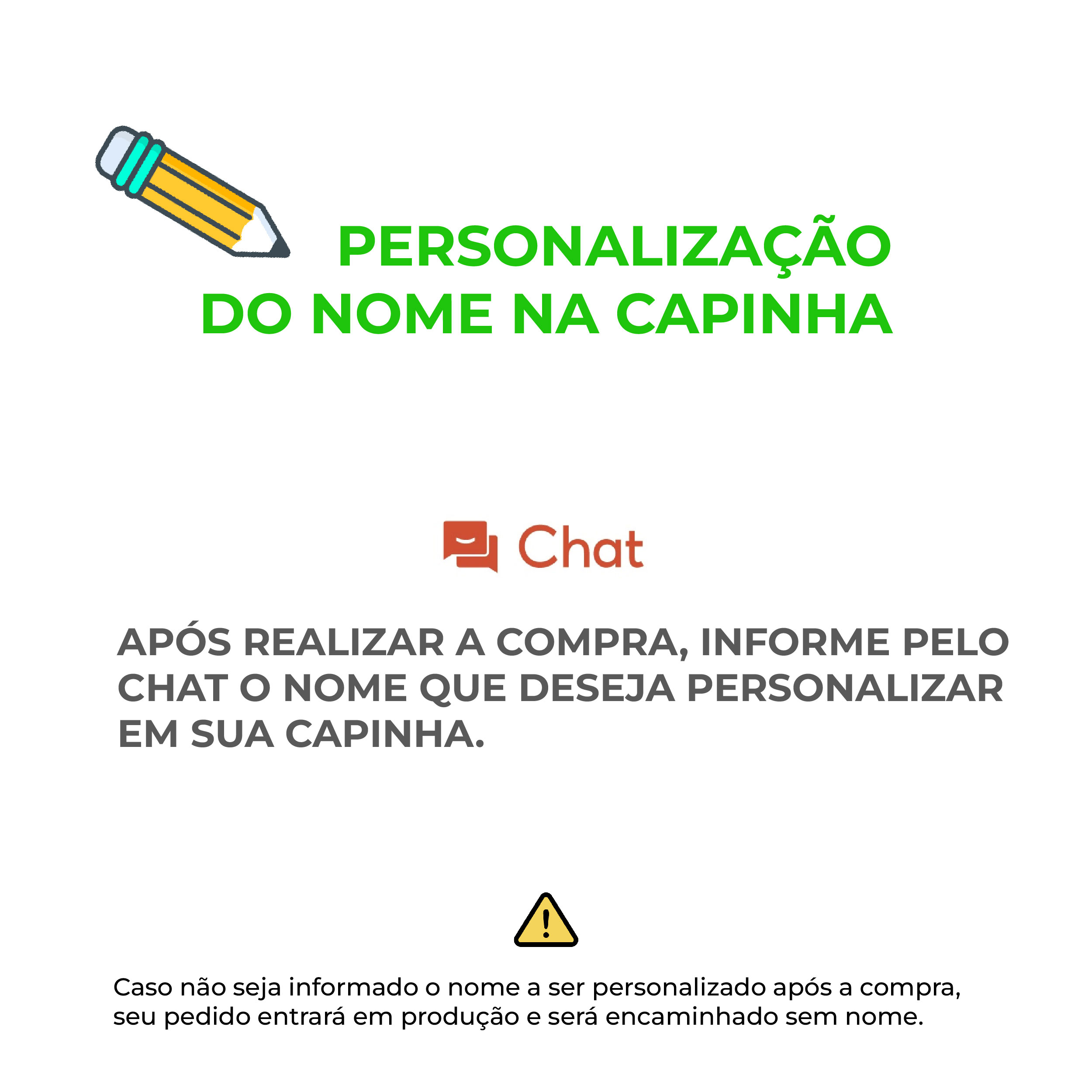 ESPECIFICAÇÕES TÉCNICAS: ✅ Silicone TPU Soft: Maleável e resistente. ✅ Tratamento Anti-Amarelamento: Proteção UV de alta performance. ✅ Proteção 360º: Sistema anti-shock nas quinas para evitar quebra do aparelho e da tela. COMO COMPRAR A SUA: • Selecione a arte e a quantidade desejada. • Confira se o modelo descrito no título é o seu celular. • Personalização: Para incluir seu nome, escolha a opção "com nome" e avise a gente nas observações do pedido ou no chat imediatamente após a compra. ⚠️ IMPORTANTE SOBRE PERSONALIZAÇÃO: Caso o cliente selecione a capa personalizada mas NÃO envie o nome no ato da compra, o produto será produzido e enviado apenas com a estampa escolhida, sem a personalização do nome. ⚠️ FIQUE ATENTO: • As laterais da capinha são transparentes (sem impressão). • Não aceitamos trocas de nomes ou artes após o pedido confirmado. • Se o nome não for enviado para capas personalizadas, a capa seguirá apenas com a estampa escolhida. CUIDADOS: Use esponja macia e detergente neutro. Fique longe de produtos químicos ou álcool para manter as cores vivas por anos!