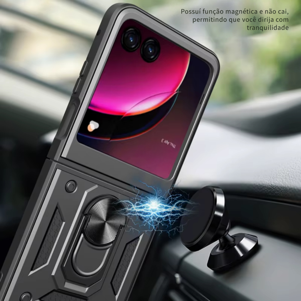 Capa Capinha Case Armor C/ Proteção de Câmera e Suporte Anel Compatível C/ Motorola Razr 50 Ultra ✔️PROTEÇÃO MILITAR: Case com design robusto e resistente a impactos, oferecendo proteção de nível militar para seu Motorola Razr 50 Ultra ✔️DESIGN VERSÁTIL: Equipado com suporte de anel giratório e proteção deslizante para câmera, proporcionando funcionalidade extra e proteção completa ✔️ROTAÇÃO AJUSTÁVEL: Sistema de rotação horizontal e vertical de 360° graus, permitindo múltiplos ângulos de visualização para uso conveniente ✔️MATERIAL PREMIUM: Construído em TPU macio com acabamento resistente, oferecendo durabilidade excepcional e proteção contra quedas ✔️COMPATIBILIDADE ESPECÍFICA: Desenvolvido exclusivamente para Motorola Razr 50 Ultra, garantindo ajuste perfeito Apresentamos a Capinha Armour para Motorola Razr 50 Ultra - uma proteção de nível militar para seu smartphone. Fabricada em TPU macio com acabamento transparente, esta case oferece proteção excepcional contra impactos e quedas. O design inovador inclui um suporte de anel integrado que gira 360° para visualização horizontal e vertical, proporcionando máximo conforto durante o uso diário. A case possui um sistema deslizante para proteção da câmera, garantindo segurança adicional para as lentes. A capinha se ajusta perfeitamente ao seu dispositivo sem adicionar volume excessivo. O padrão sólido e o acabamento premium combinam resistência com elegância. A case é equipada com tecnologia de sucção forte para fácil instalação em suportes veiculares, oferecendo praticidade no dia a dia. Ideal para usuários que buscam proteção robusta sem comprometer a estética do aparelho. 📦 Na caixa você recebe: 1x capa armour c/ SUPORTE