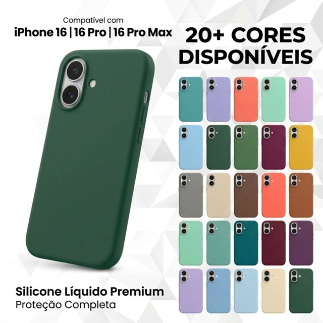 | Capa Capinha Silicone Aveludada Compatível Com iPhone 16 / 16 Pro /... este produto | R$ 14,99 | 50% | 4.8/5 | — |