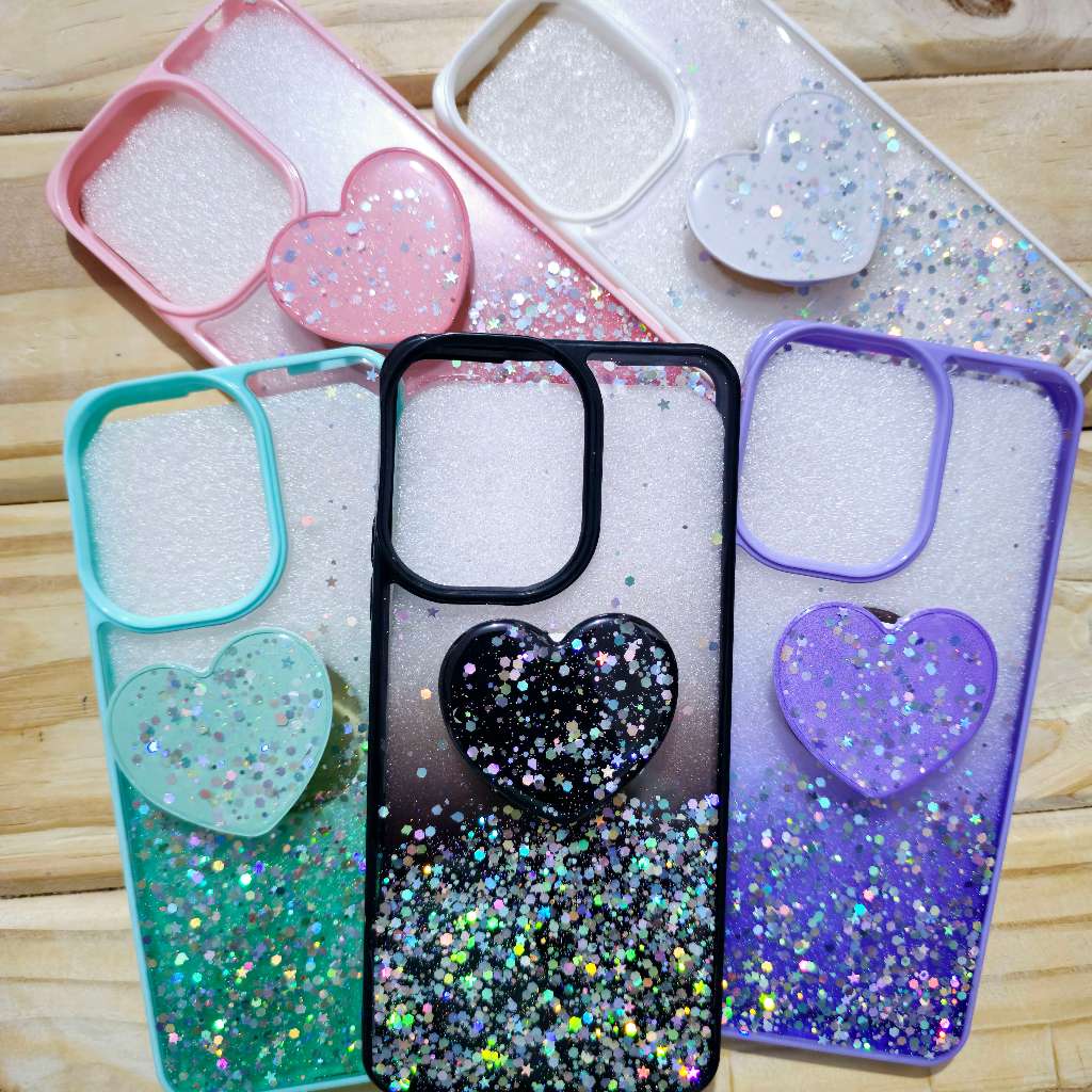 Capa capinha silicone com suporte de coração para motorola Moto G05 G06 G15 G35 G75 G56 G86 E15 EDGE 60 FUSION EDGE 60