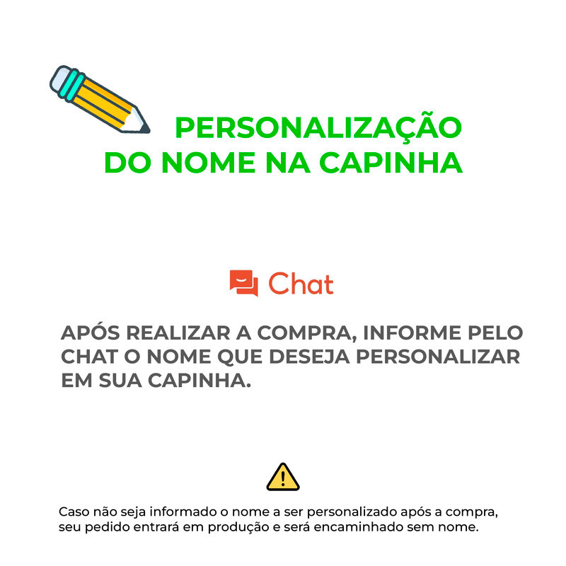 ESPECIFICAÇÕES TÉCNICASs: ✅ Silicone TPU Soft: Maleável e resistente. ✅ Tratamento Anti-Amarelamento: Proteção UV de alta performance. ✅ Proteção 360º: Sistema anti-shock nas quinas para evitar quebra do aparelho e da tela. COMO COMPRAR A SUA: • Selecione a arte e a quantidade desejada. • Confira se o modelo descrito no título é o seu celular. • Personalização: Para incluir seu nome, escolha a opção "com nome" e avise a gente nas observações do pedido ou no chat imediatamente após a compra. ⚠️ IMPORTANTE SOBRE PERSONALIZAÇÃO: Caso o cliente selecione a capa personalizada mas NÃO envie o nome no ato da compra, o produto será produzido e enviado apenas com a estampa escolhida, sem a personalização do nome. ⚠️ FIQUE ATENTO: • As laterais da capinha são transparentes (sem impressão). • Não aceitamos trocas de nomes ou artes após o pedido confirmado. • Se o nome não for enviado para capas personalizadas, a capa seguirá apenas com a estampa escolhida. CUIDADOS: Use esponja macia e detergente neutro. Fique longe de produtos químicos ou álcool para manter as cores vivas por anos!