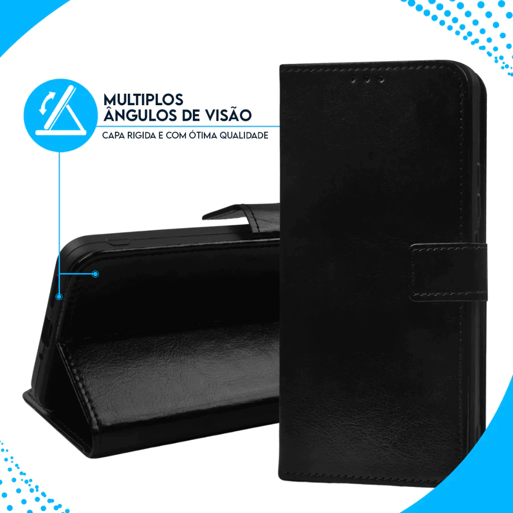 Capa Carteira em Couro - Case em couro. - Fecho magnético. - Porta cartões bancários na parte interna. - Top Premium de alta qualidade e durabilidade. - Cortes para todas as entradas do aparelho, sem ser necessário a remoção da capa. - Compacta, tamanho exato e estilosa. - Design moderno. - Protege seu telefone de sujeira, riscos e quedas.