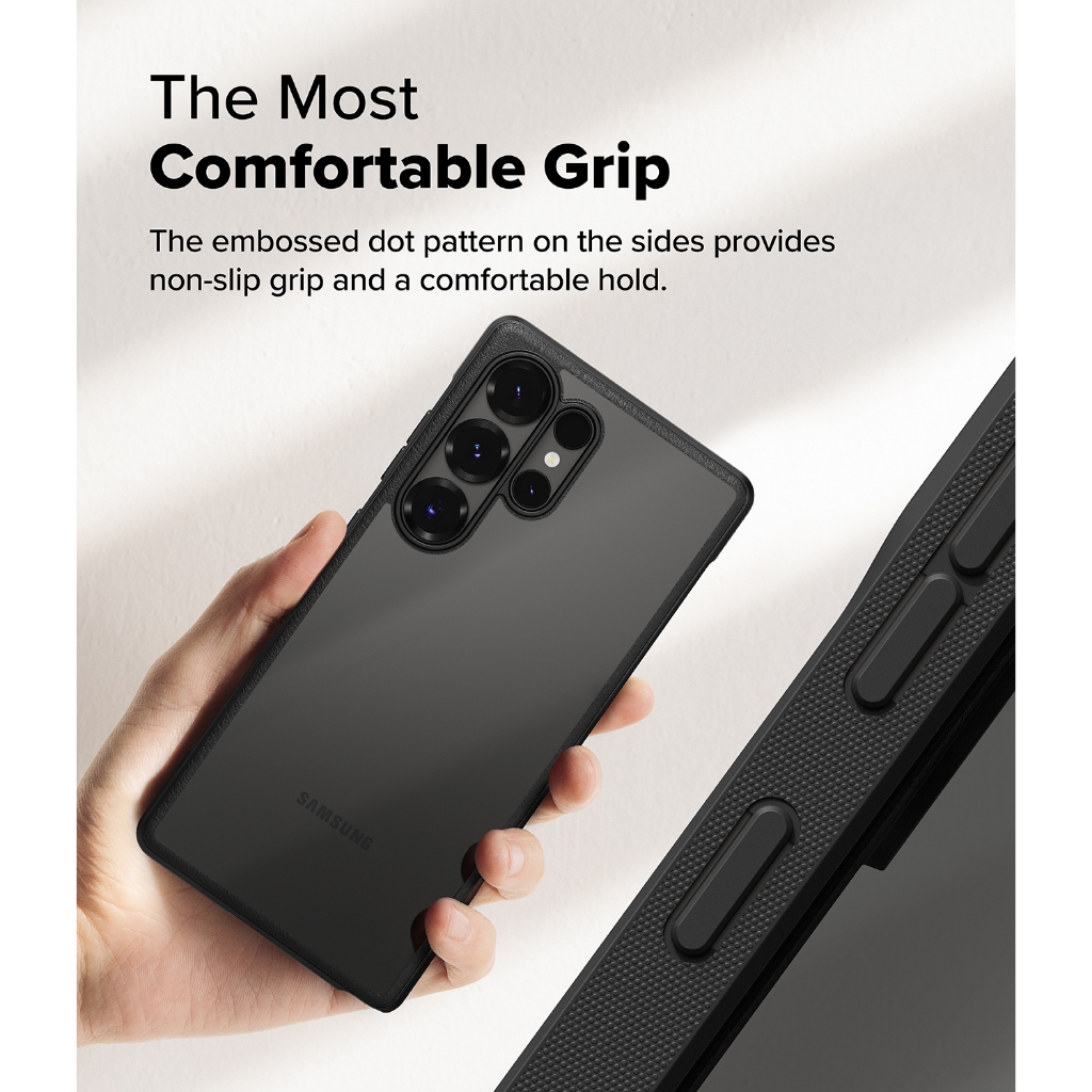 Capa Ringke Fusion Bold desenvolvida para Galaxy S25 Ultra de 6.8 polegadas. • A Fusion Bold conta com suas marcantes bordas opacas para maior aderência e uma proteção robusta. • Capa resistente com a parte traseira de Policarbonato rígido e bordas em TPU flexíveis. • Textura serrilhada nas laterais aumenta a aderência da capa, tornando mais fácil e confortável segurar o celular. • Compatível com carregamento sem fio e protetores de tela. As Cases da Ringke estão entre as melhores do Mundo. Não utilize produtos químicos abrasivos para higienizar a Capa, inclusive álcool. O álcool é abrasivo e pode remover o verniz e a tinta da Capa.
