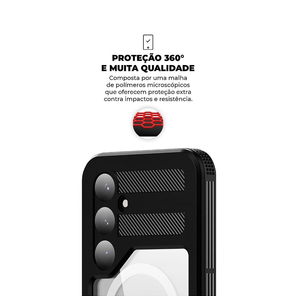 Use a melhor case para Samsung Galaxy S24 Plus A Capa à Prova D'água Nautical da Gshield para Samsung é o acessório perfeito para quem adora aventuras e busca máxima proteção para o seu celular, seja na praia, no clube ou até mesmo no banho. Projetada para resistir a imersões de até 2 metros por 1 hora, ela garante segurança completa contra respingos e submersões acidentais, permitindo que você aproveite momentos ao ar livre ou em contato com a água sem preocupações. Feita em polipropileno de alta densidade, a capa é altamente resistente e não amarela com o tempo, preservando sua aparência e funcionalidade mesmo com o uso contínuo. Seu design é ajustado para se encaixar perfeitamente no seu aparelho, oferecendo proteção total sem comprometer a estética ou a experiência de uso. Além da resistência à água, a capa protege seu dispositivo contra impactos e riscos, mantendo a tela impecável e o celular em perfeito estado. Certificada com o padrão US Military, a Capa à Prova D'água Gshield combina tecnologia, durabilidade e estilo para te acompanhar em qualquer situação. ESPECIFICAÇÕES - Material: Polipropileno de alta densidade - Não Amarela - Marca: Gshield - Dimensões: Dimensões exatas do aparelho - Proteção: Contra impactos e riscos à tela - Certificações: Us Military Não apropriada para o uso no dia a dia COMPATIBILIDADE - Samsung Galaxy S24 Plus ITENS INCLUSOS - 1x Capa protetora