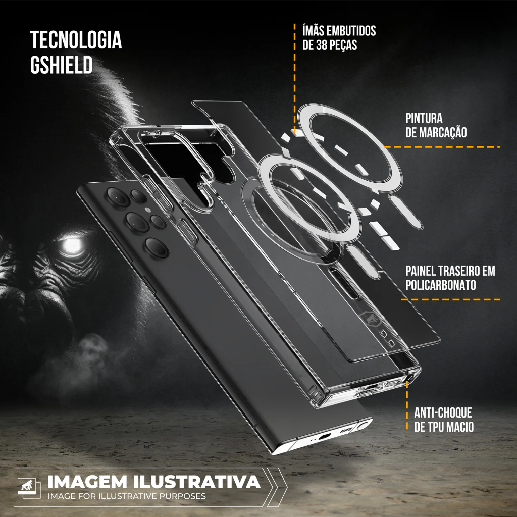 A Capa MagSafe Transparente da Gshield para Samsung Galaxy S23 FE é a escolha perfeita para quem busca proteção e estilo para seu smartphone. Com um design fino, leve e ergonômico, a capa realça o brilho e a elegância original do aparelho enquanto oferece segurança reforçada contra impactos e arranhões. Produzida em policarbonato transparente de alta qualidade, ela foi cuidadosamente projetada para se encaixar com precisão ao dispositivo, garantindo um ajuste perfeito sem interferir na usabilidade dos botões, portas de acesso e outras funcionalidades. O anel de ímãs integrado à traseira da capa proporcionam conexão magnética estável com carregadores sem fio e acessórios compatíveis com MagSafe. Esse sistema não apenas simplifica o carregamento, mas também minimiza o risco de posicionamento incorreto, assegurando que o smartphone se alinhe automaticamente ao ponto de carga ideal. Não compatível com uso de suporte magnético / Utilizar a placa para suporte magnético poderá impossibilitar o carregamento Wireless OBS: O smartphone quando superaquecido durante o uso e/ou carregamento, transmite um calor que provoca uma reação química do material da capa que pode ocasionar uma aparência amarelada na mesma. ESPECIFICAÇÕES Material: policarbonato de alta densidade Marca: Gshield Dimensões: Dimensões exatas do aparelho Proteção: Contra impactos e riscos Cor: Transparente COMPATIBILIDADE Samsung Galaxy S23 FE ITENS INCLUSOS 1x Capa protetora