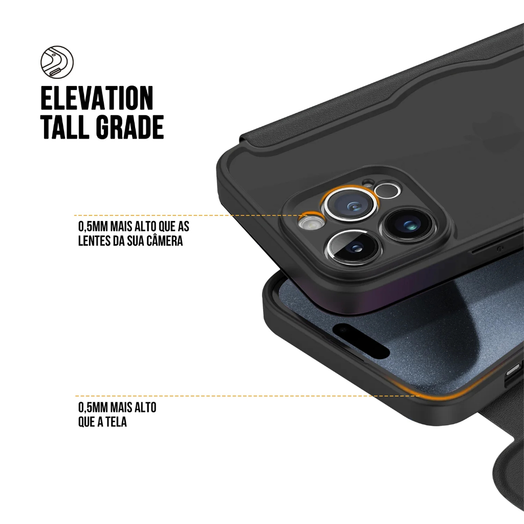 A Capa Carteira Dual para iPhone é a fusão de proteção e praticidade! Além de proteger o seu iPhone, a Capa Carteira Dual da Gshield oferece espaço para seus cartões essenciais, combinando a conveniência de uma carteira com a funcionalidade de uma capa de proteção. Fabricada com materiais de alta qualidade, a Capa Carteira Dual não só protege contra arranhões e quedas, mas também mantém uma aparência elegante ao longo do tempo. A Capa Carteira Dual possui um fecho magnético oculto, com ímãs estrategicamente posicionados na parte frontal, proporcionando maior proteção e impedindo aberturas acidentais. Além de proteger seu smartphone, a tecnologia de bloqueio RFID garante também a segurança de seus cartões, impedindo a leitura não autorizada por aproximação. A estrutura durável envolve completamente o seu celular, garantindo proteção contra impactos, arranhões e sujeira. Bordas elevadas também protegem a tela e a câmera contra danos acidentais. Além disso, os recortes precisos proporcionam acesso fácil a todas as portas, botões e funções do seu iPhone sem a necessidade de remover a capa. Eleve a praticidade e a proteção do seu iPhone com a Capa Carteira Dual da Gshield, a escolha ideal para quem busca funcionalidade e segurança sem abdicar do estilo. ESPECIFICAÇÕES - Material: Traseira: PC + PET | Lateral: TPU - Marca: Gshield - Dimensões: Dimensões exatas do aparelho - Proteção: Contra impactos e riscos à tela - Certificações: Us Military COMPATIBILIDADE - Escolha o modelo do seu aparelho ITENS INCLUSOS - 1x Capa protetora