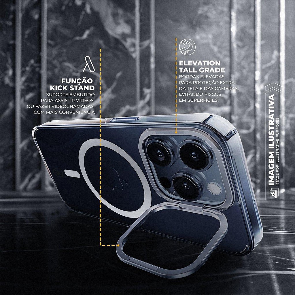 Capa MagSafe Crystal Armor Stand Gshield para iPhone 16 – Transparente Proteja e valorize o visual do seu iPhone 16 com a Capa MagSafe Crystal Armor Stand da Gshield. Transparente e resistente, ela mantém a estética original do aparelho enquanto oferece proteção premium e recursos práticos para o dia a dia. Destaques - Transparência cristalina que não amarela: material avançado com garantia vitalícia contra amarelamento, preservando o aspecto novo por muito mais tempo. - Compatível com MagSafe: fixação magnética forte para carregamento sem fio e uso com acessórios MagSafe, sem interferências. - Suporte (kickstand) embutido: posicione o iPhone em ângulos ideais para vídeos, chamadas e produtividade. - Proteção completa: cobertura de cantos e bordas contra quedas, impactos e riscos, com padrão de proteção US Military. - Aro elevado para câmera: tecnologia Elevation Tall Grade mantém as lentes protegidas do contato com superfícies. - Encaixe sob medida: recortes precisos e botões cobertos garantem uso confortável e acesso total às funções. - Antidesgaste do tempo: superfície projetada para permanecer clara e intacta mesmo com uso prolongado. Benefícios