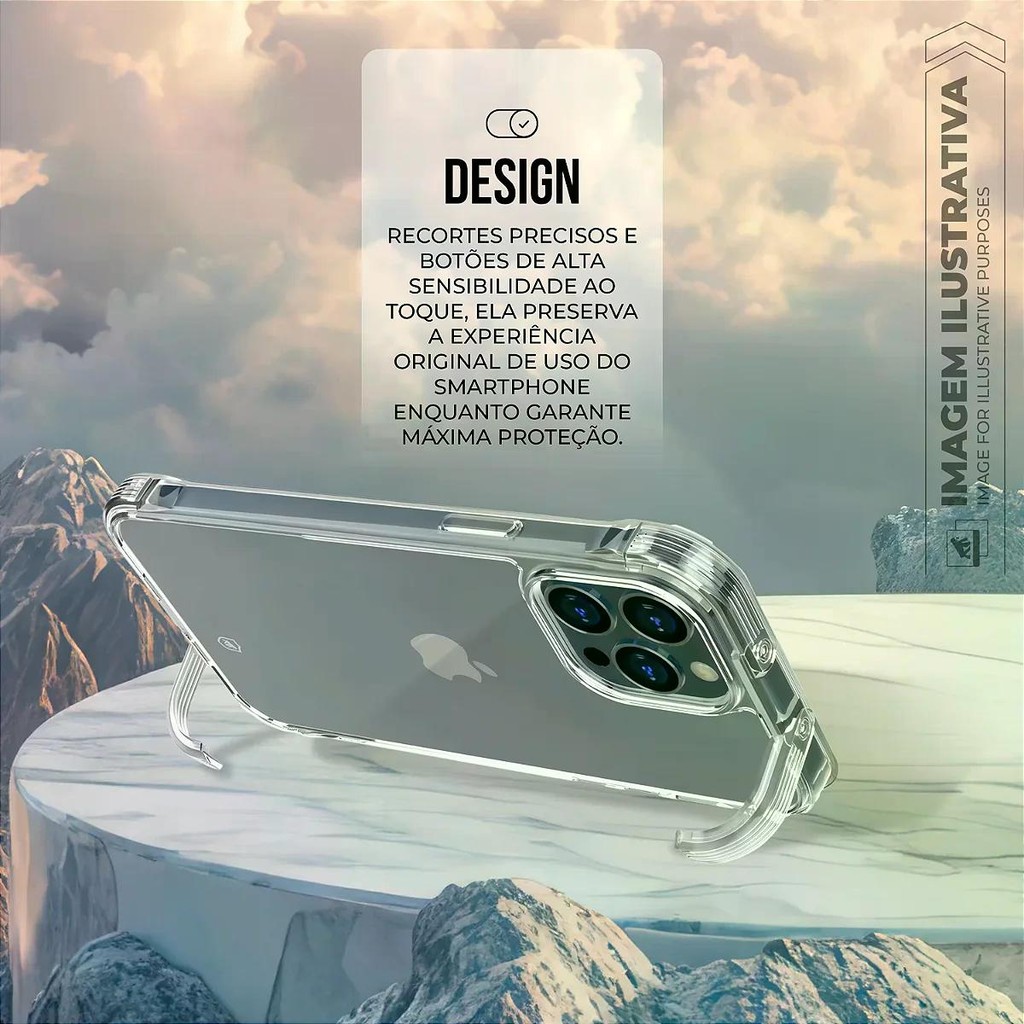 LEIA ANTES DE COMPRAR Os fabricantes de smartphones e smartwatches possuem variações de tamanho para cada tipo de produto, geralmente as mudanças de dimensões são acompanhadas pelo tamanho em polegadas ou pelas palavras: PLUS, +, PRO, PLAY, LITE, SE, MM, entre outras, confira antes da compra se seu dispositivo é compatível com o produto anunciado e evite transtornos em sua compra. Qualquer dúvida utilize o campo de perguntas no final da página ou leia as avaliações de outros consumidores. A Capa Lybrid da Gshield é a combinação perfeita de proteção avançada, praticidade e design minimalista. Desenvolvida para quem não abre mão da segurança do smartphone sem esconder o visual original, ela alia resistência contra quedas e impactos com um visual limpo e sofisticado. Sua estrutura híbrida conta com traseira rígida em policarbonato transparente, que mantém o brilho e a aparência original do aparelho ao longo do tempo, e laterais em TPU flexível, que absorvem choques e garantem encaixe firme e confortável. As bordas elevadas anti-impacto oferecem proteção extra para a tela e o módulo de câmeras, reduzindo riscos em quedas acidentais. Um dos grandes diferenciais é o suporte retrátil invisível integrado, que permite apoiar o celular em superfícies planas para assistir vídeos, jogar ou realizar chamadas com total conforto, sem precisar de acessórios adicionais. Além disso, a capa possui ganchos discretos nos quatro cantos, possibilitando pendurar o aparelho de forma estável em diferentes superfícies ou adaptá-lo ao seu estilo de uso. Projetada com certificação anti-impacto, a Capa Lybrid foi feita para quem busca segurança de nível militar, sem comprometer a estética do dispositivo. Com recortes precisos e botões de alta sensibilidade ao toque, ela preserva a experiência original de uso do smartphone enquanto garante máxima proteção. ESPECIFICAÇÕES Marca: Gshield Cor: Preta Material: Policarbonato rígido (traseira) + TPU flexível (laterais) Dimensões: Dimensões exatas do aparelho Certificações: Us Military COMPATIBILIDADE iPhone 17 ITENS INCLUSOS 1x Capa protetora GARANTIA 3 meses contra defeitos de fabricação + Garantia Vitalícia Co-Participativa Com decorrer do uso a capa pode apresentar arranhões pelo contato diário com superficies SEGURO Aconselhamos para uma proteção completa a compra dos planos de coberturas contra roubo, furto e danos da Gshield, conheça nossos planos