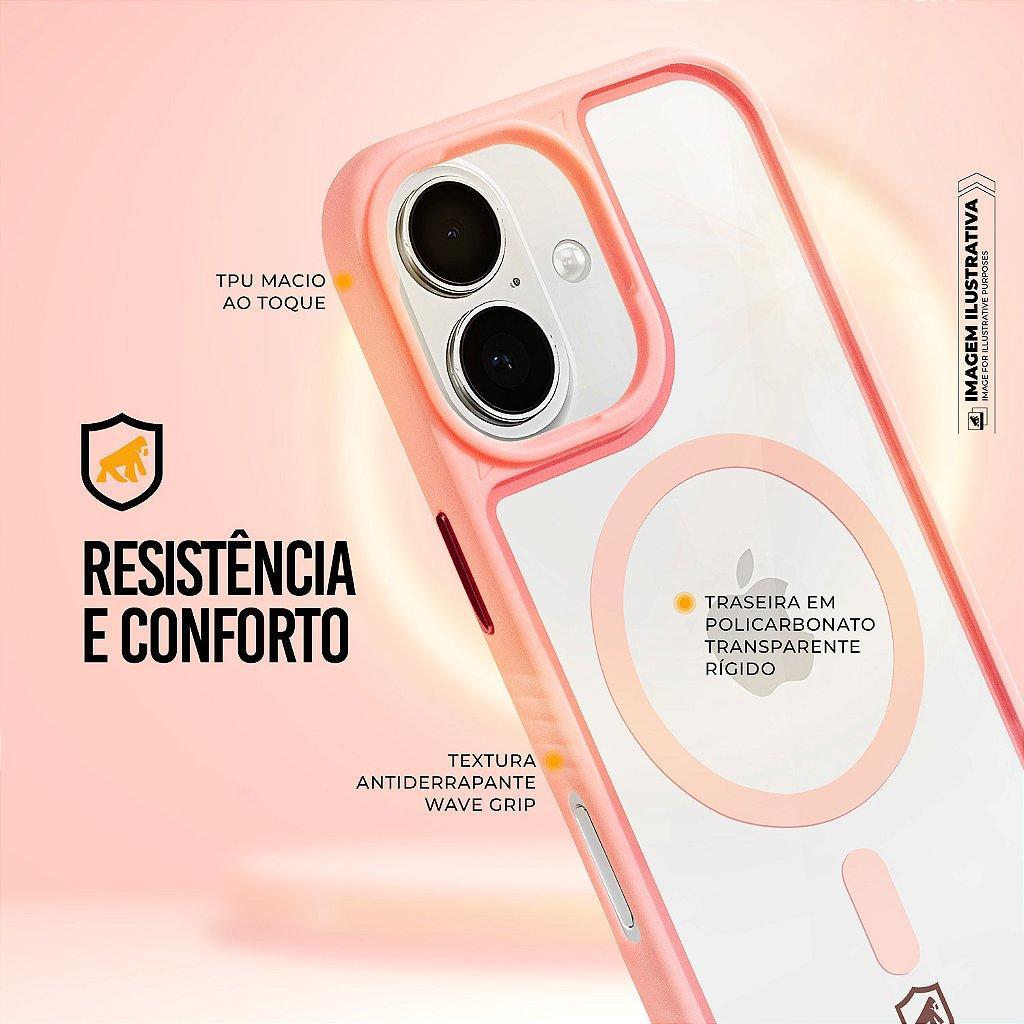 A Capa MagSafe Wave Fumê da Gshield é a união ideal de proteção, estilo e praticidade para o seu iPhone. Produzida com traseira em policarbonato rígido e laterais em TPU macio com textura antiderrapante Wave Grip, ela oferece resistência contra impactos, riscos e desgastes do uso diário, sem abrir mão de um design moderno e sofisticado. Com compatibilidade total com a tecnologia MagSafe, a capa conta com anel magnético integrado, garantindo encaixe seguro com carregadores e acessórios magnéticos, além de permitir recarga prática sem a necessidade de removê-la. O interior possui acabamento delicado com toque suave e microtextura que evita riscos no aparelho, enquanto as bordas elevadas protegem a tela e as lentes da câmera em superfícies planas. Combinando proteção 360°, conforto, estilo premium e funcionalidades extras, a Capa MagSafe Wave Fumê da Gshield é perfeita para clientes exigentes que não abrem mão de qualidade e praticidade no dia a dia. ESPECIFICAÇÕES Marca: Gshield Material: TPU + Policarbonato Dimensões: Dimensões exatas do aparelho Cor: Rosa