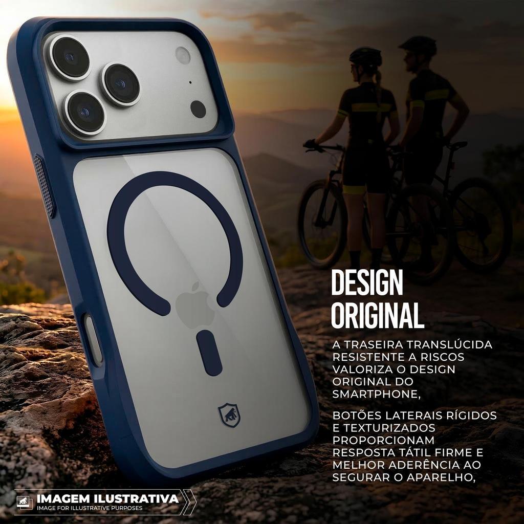 A Capa Octacore MagSafe da Gshield foi desenvolvida para oferecer proteção reforçada sem abrir mão da funcionalidade e do visual moderno. Com estrutura robusta e cantos reforçados, ela absorve melhor impactos em casos de quedas, ajudando a preservar a integridade do aparelho no dia a dia. O encaixe é preciso, mantendo total acesso às portas, botões e câmeras, enquanto a borda elevada contribui para proteger a tela e o conjunto de lentes. A traseira translúcida resistente a riscos valoriza o design original do smartphone, criando um contraste marcante com as laterais reforçadas. Os botões laterais rígidos e texturizados proporcionam resposta tátil firme e melhor aderência ao segurar o aparelho, aumentando a segurança durante o uso. Equipada com anel magnético compatível com tecnologia MagSafe, a Capa Octacore garante alinhamento magnético preciso para carregadores e acessórios, proporcionando conexão estável e carregamento eficiente. Uma combinação ideal entre resistência, praticidade e desempenho para quem busca proteção confiável todos os dias. ESPECIFICAÇÕES Marca: Gshield Material: Policarbonato e TPU Dimensões: Dimensões exatas do aparelho Proteção: Contra impactos e riscos Cor: Azul