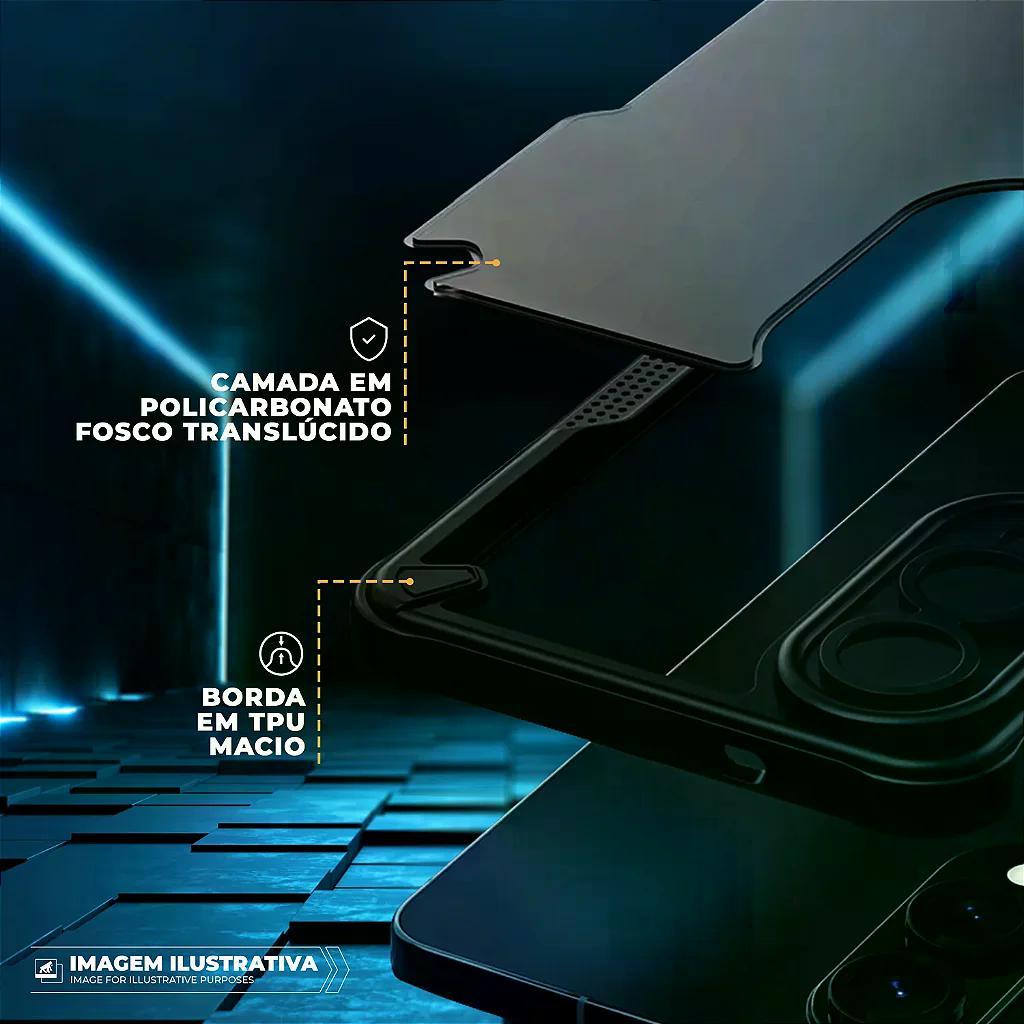 DESCRIÇÃO1) A Capa Rugged Shield da Gshield foi criada especialmente para quem busca proteção máxima sem abrir mão do estilo e da funcionalidade.O design da capa é um dos seus maiores diferenciais, pensado cuidadosamente para oferecer não só proteção, mas também um visual moderno, tecnológico e funcional. Sua estética combina linhas retas com recortes estratégicos que reforçam a sensação de robustez, sem tornar a capa exageradamente volumosa. Os quatro cantos possuem reforços com design angular, que além de absorver impactos, conferem uma aparência tática e resistente — ideal para quem gosta de um estilo mais sólido e imponente. A traseira em policarbonato fosco translúcido revela discretamente o logotipo do smartphone e confere um aspecto sóbrio e elegante ao aparelho, criando um belo contraste com a moldura preta que envolve toda a estrutura. Esse acabamento também evita marcas de dedo e riscos visuais, mantendo a aparência da capa sempre limpa e sofisticada. Nas laterais, a texturização em micropontos melhora a pegada e proporciona mais segurança no manuseio, sendo especialmente útil durante o uso com uma só mão. Além disso, os recortes são precisos e alinhados com os botões, portas e câmeras do smartphone, garantindo acesso fácil e confortável a todas as funções do dispositivo. Outro ponto de destaque no design é o recorte elevado em torno do módulo de câmeras, que cria um efeito de proteção em camadas, como uma moldura robusta que se integra perfeitamente ao restante da capa, dando ainda mais personalidade ao visual do aparelho. Com a Capa Rugged Shield da Gshield, o design vai muito além da estética: ele entrega funcionalidade, ergonomia e proteção real, em um produto que eleva a experiência de uso do seu smartphone. 2) O Limpa Telas Flex Gshield é um acessório prático, compacto e reutilizável, desenvolvido para facilitar a limpeza de telas no dia a dia. Ideal para quem usa smartphone, tablet, notebook ou outros dispositivos com tela, ele permite remover poeira, marcas de dedo e sujeiras leves de forma rápida e segura, sem riscar ou danificar a superfície. Seu design portátil cabe facilmente no bolso, mochila, bolsa ou nécessaire, garantindo que você tenha sempre uma solução de limpeza à mão, em casa, no trabalho ou em viagens. O revestimento externo em microfibra de alta qualidade realiza uma limpeza suave e eficiente, mantendo a tela limpa e com melhor visibilidade. O Limpa Telas Flex conta com um reservatório interno reutilizável, que pode ser reabastecido com o líquido de sua preferência. Isso torna o produto mais sustentável, econômico e adaptável à sua rotina. O acionamento em spray facilita a aplicação controlada, evitando desperdícios. Compacto, funcional e inteligente, o Limpa Telas Flex Gshield é a escolha ideal para quem valoriza praticidade, cuidado com seus dispositivos e organização no dia a dia. ESPECIFICAÇÕESCapa Rugged Shield Marca: GshieldMaterial: Policarbonato e TPUDimensões: Dimensões exatas do aparelhoProteção: Contra impactos e riscosCertificações: Us MilitaryLimpa Telas FlexMarca: GshieldMaterial: Corpo: Plástico ABS resistente | MicrofibraDimensões: 9 x 3 x 3 (AxLxP)Capacidade: 12ml recarregável