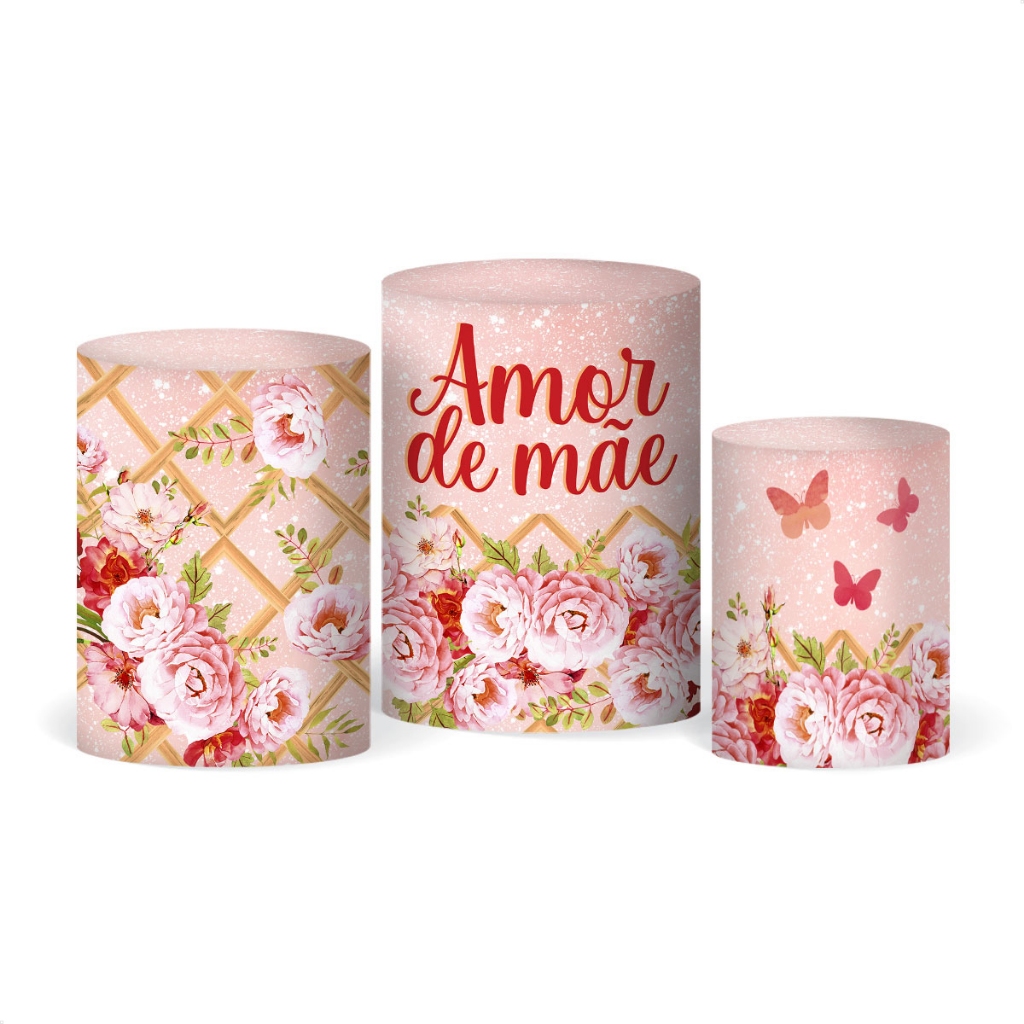 Capa Cilindro Decoração Dia das Mães Em Tecido Sublimado Trio Veste Fácil para Festa