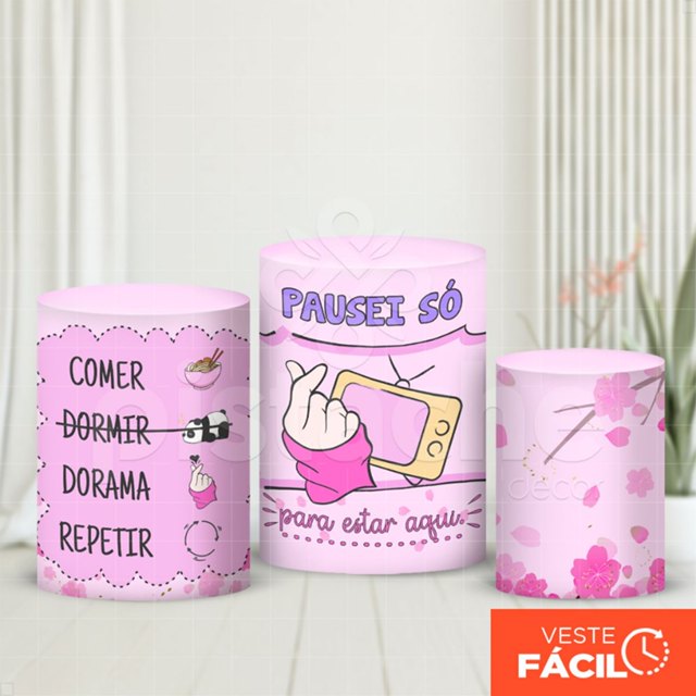 Capa Cilindro Festa Dorama Trio Veste Fácil Em Tecido Com Elástico Decoração Festa