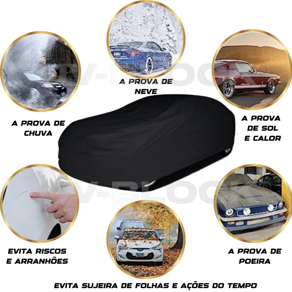 Atenção: A Capa de COURO da UV-BLOCK possui padrão alto não se comparando a capas comuns e concorrentes do mercado, o seu segredo está no couro usado na sua fabricação que proporciona muito mais proteção ao seu veículo e mais tempo durável. Capa de COURO UV-BLOCK P / M / G / GG - TOTALMENTE FORRADA Quer manter o seu veículo sempre limpo e protegido? Apresentamos a capa de Couro UV-BLOCK resistente da mais alta qualidade, projetada para proteger o seu carro de qualquer condição climática, como sol escaldante, chuva intensa, sujeira, folhas e até mesmo dejetos. Com a nossa capa resistente de Couro da UV-Block, você não precisará mais se preocupar com arranhões na pintura ou manchas indesejadas. Além disso, ela é adequada tanto para garagens cobertas quanto descobertas, oferecendo uma proteção completa em qualquer ambiente. Elas são especificamente desenhadas para lhe oferecer a mais avançada proteção contra os seguintes notáveis inimigos: raios U.V., sujeira, sereno, maresia, dejetos de pássaros, folhas, resíduos de árvores, fuligem, poluentes e outras partículas que podem danificar a superfície do seu veículo. Aplicação Tamanho P: Carros com até 4,05 de Comprimento Aplicação Tamanho M: Carros de 4,05 até 4,50 de Comprimento Aplicação Tamanho G: Carros de 4,51 até 4,90 de Comprimento Aplicação Tamanho GG: Carros de 4,52 até 5,25 de Comprimento Especificações: - Não Risca a Pintura do Veículo - 100% Impermeável - 100% Forrada - Utilização em Garagens Cobertas e Descobertas - Protege seu Veículo do Sol, Chuva e Poeira - Máxima Proteção Contra os Raios U.V. - Protege o Veículo por Completo - Fixação Firme com Elástico nas Bordas - Fácil Instalação - Marca - Original UV-BLOCK Cuide do seu carro como ele merece! Adquira agora a capa de Couro da UV-Block resistente que mantém o seu veículo sempre limpo e com aparência de novo.